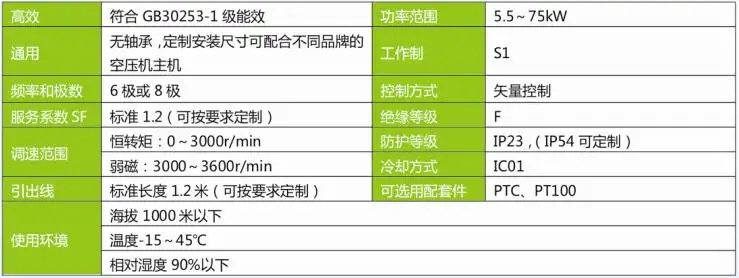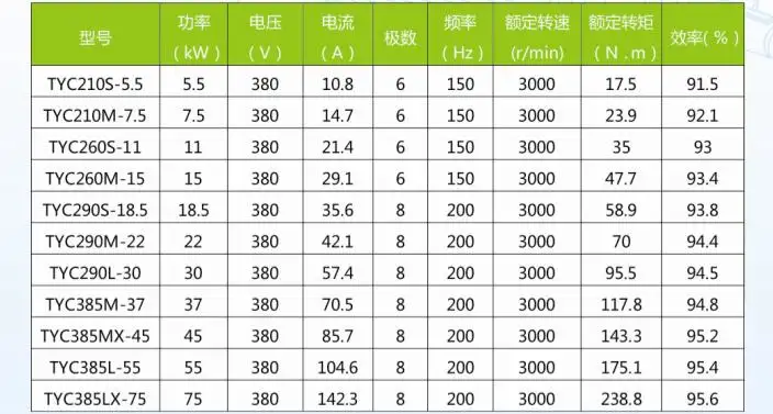 TYC空气压缩机专用永磁一体同步电机基本参数: