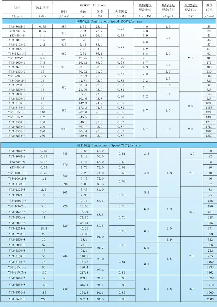 YBX3系列隔爆型三相异步电动机的电气性能同YE2系列。除具有效率高、温升低、噪音低、振动小等优点外,还具有结构,使用安全可靠等显著特点,YB3系列隔爆型电动机采用F级绝缘(温升按B级考核),外壳防护等级IP55,冷却方式IC411,工作方式为S1连续工作制。